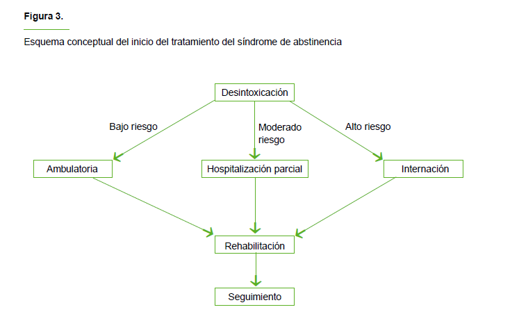 La mayoría de los pacientes ambulatorios con dependencia pueden ser desintoxicados en forma rápida y segura sin el uso de drogas psicoactivas. La aparición de síntomas severos (por ejemplo, delirium tremens) es criterio de internación.