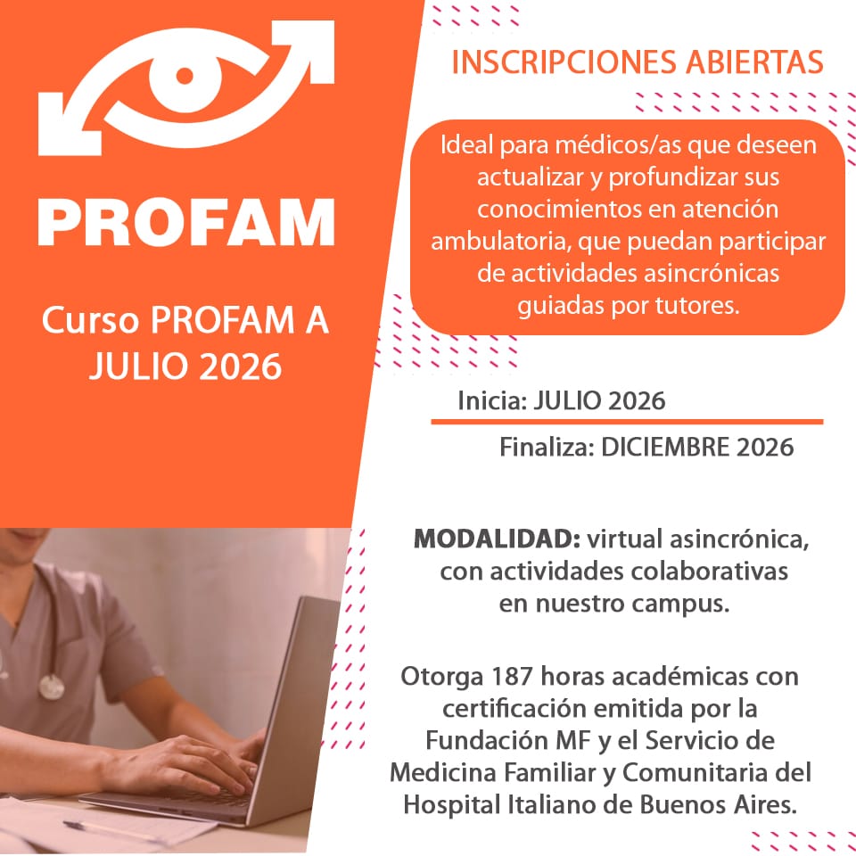En caso de inscripciones grupales (de 4 o más profesionales juntos) se otorgará un descuento que se puede gestionar escribiendo un correo a profam@hospitalitaliano.org.ar