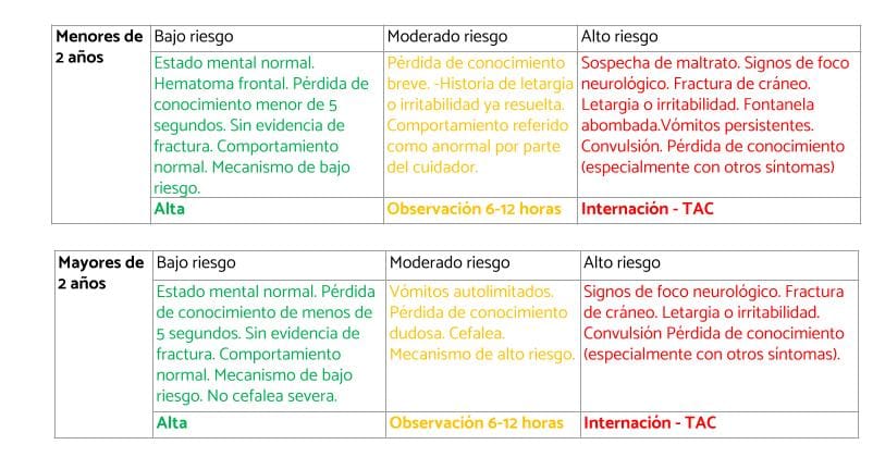 Interrogar: edad del niño, tiempo transcurrido del trauma, mecanismo del trauma, y los síntomas asociados.