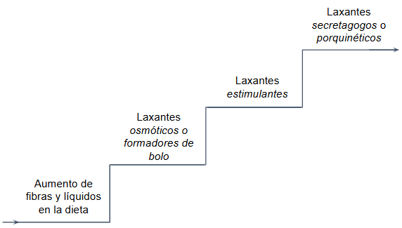 - Laxantes secretagogos: linaclotide 72 a 145 mg por día. Tomar 30 minutos antes de la primera comida del día. Además tiene efecto dual por aliviar el dolor abdominal.